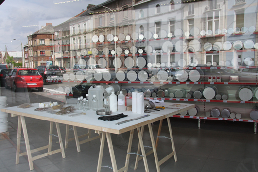 Our investigation starts at a spot in Marchienne-au-Pont. A massive stone lies in front of a metal gate. We wonder about the things around us and how they continue to appear and disappear. Are we involved? We took a picture of the place and set up a lab in a local diy store. Here, we test ways to impact the presence of the stone. Results are neither certain nor lasting.